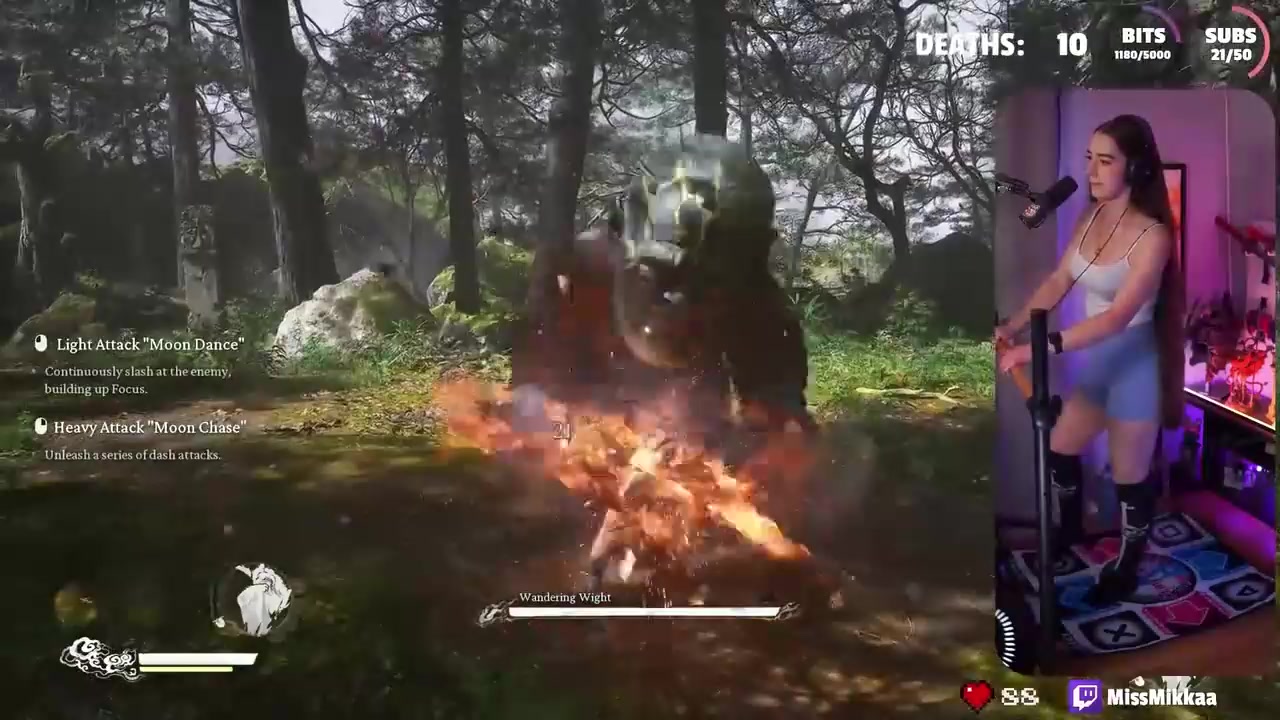 9月11日讯曾用跳舞毯通关《战神》和《艾尔登法环》的女主播MissMikkaa近日又开始了《黑神话》的挑战。之前她已经使用手柄通关过了一次,现在使用跳舞毯打到了第二章。