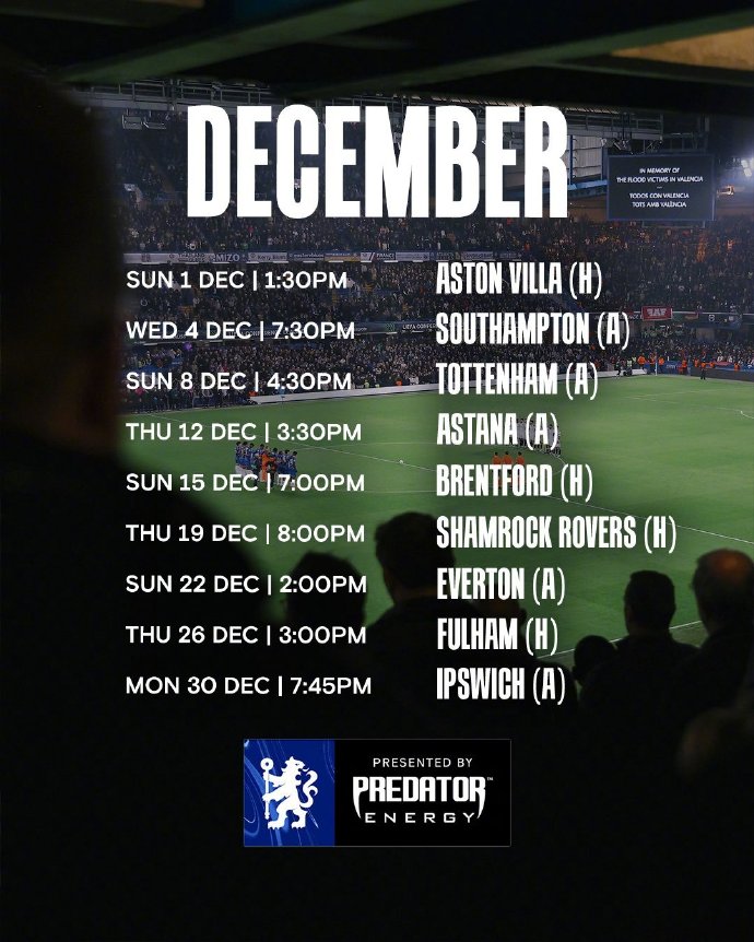 切尔西首发:12-约根森、2-迪萨西、4-阿达拉比奥尤、5-巴迪亚西勒、40-维加、31-卡萨迪、22-霍尔、19-桑乔、18-恩昆库、10-穆德里克、38-吉乌