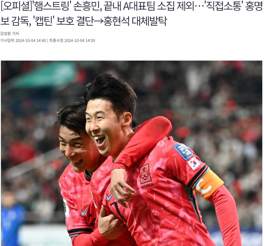 北京时间10月4日,韩国足协官方宣布,孙兴慜因伤退出韩国队的集训,太极虎补招了在美因茨踢球的洪铉锡。随后,韩国队主帅洪明甫对此进行了解释,他表示不想让孙兴慜冒险,韩国队已经有了B计划。