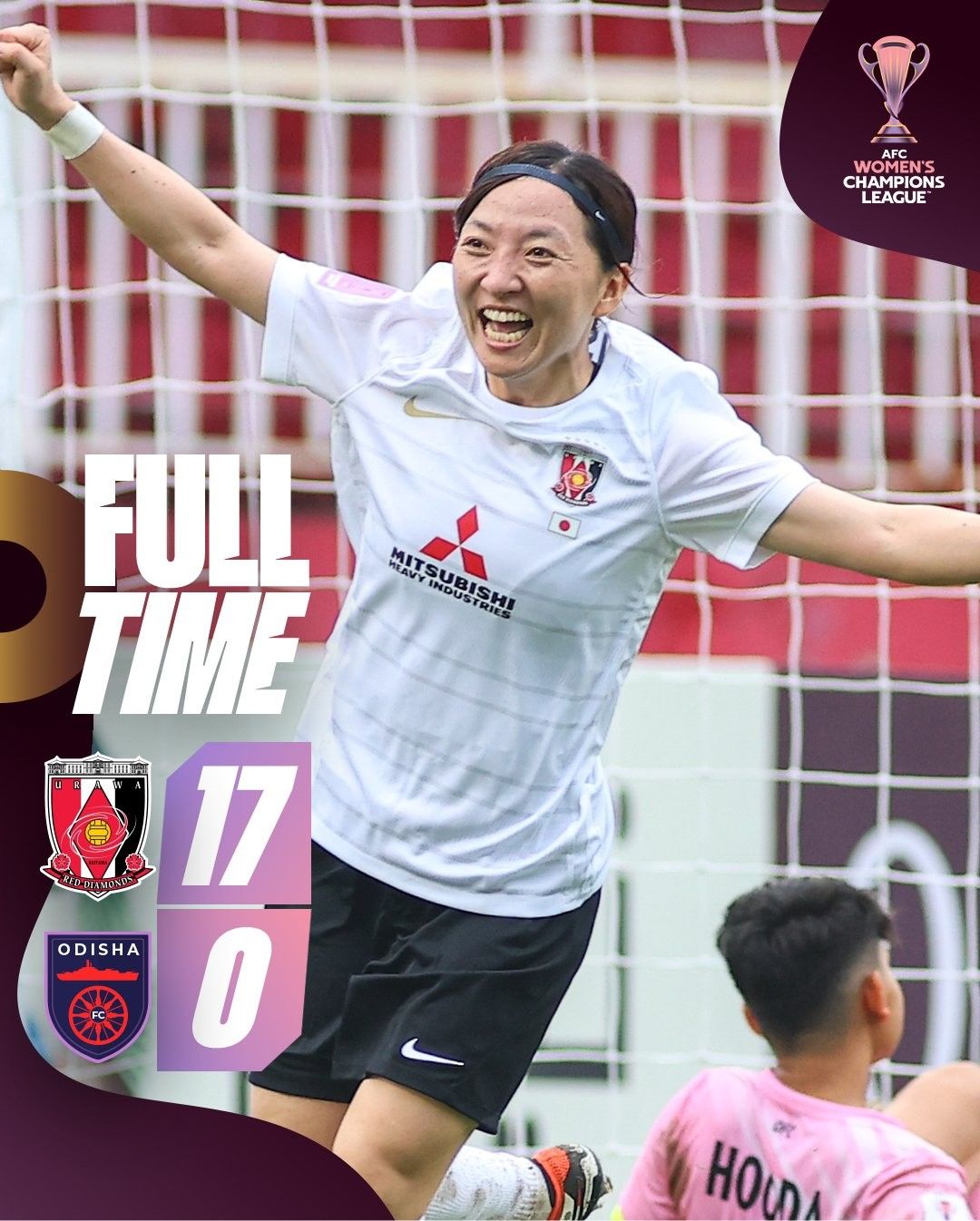 稍早前结束的女足亚冠联赛小组赛C组首轮比赛中,浦和红钻女足坐镇主场17-0狂胜奥里萨女足。